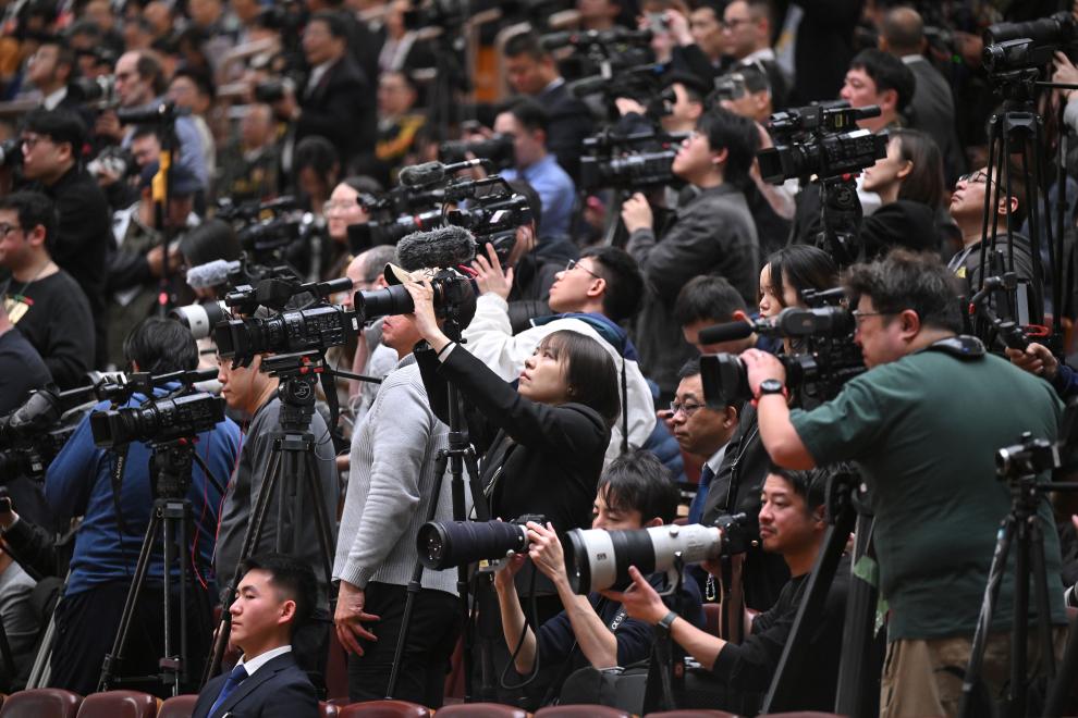 3月5日,十四屆全國(guó)人大三次會(huì)議開幕會(huì)在北京人民大會(huì)堂舉行。這是記者在會(huì)場(chǎng)采訪。